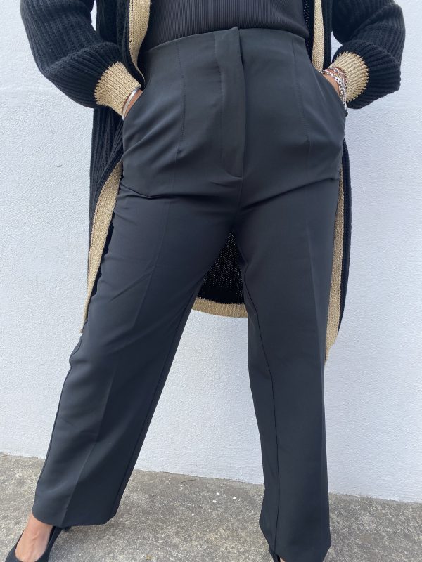 Pantalones tiro alto con bolsillos de color negro
